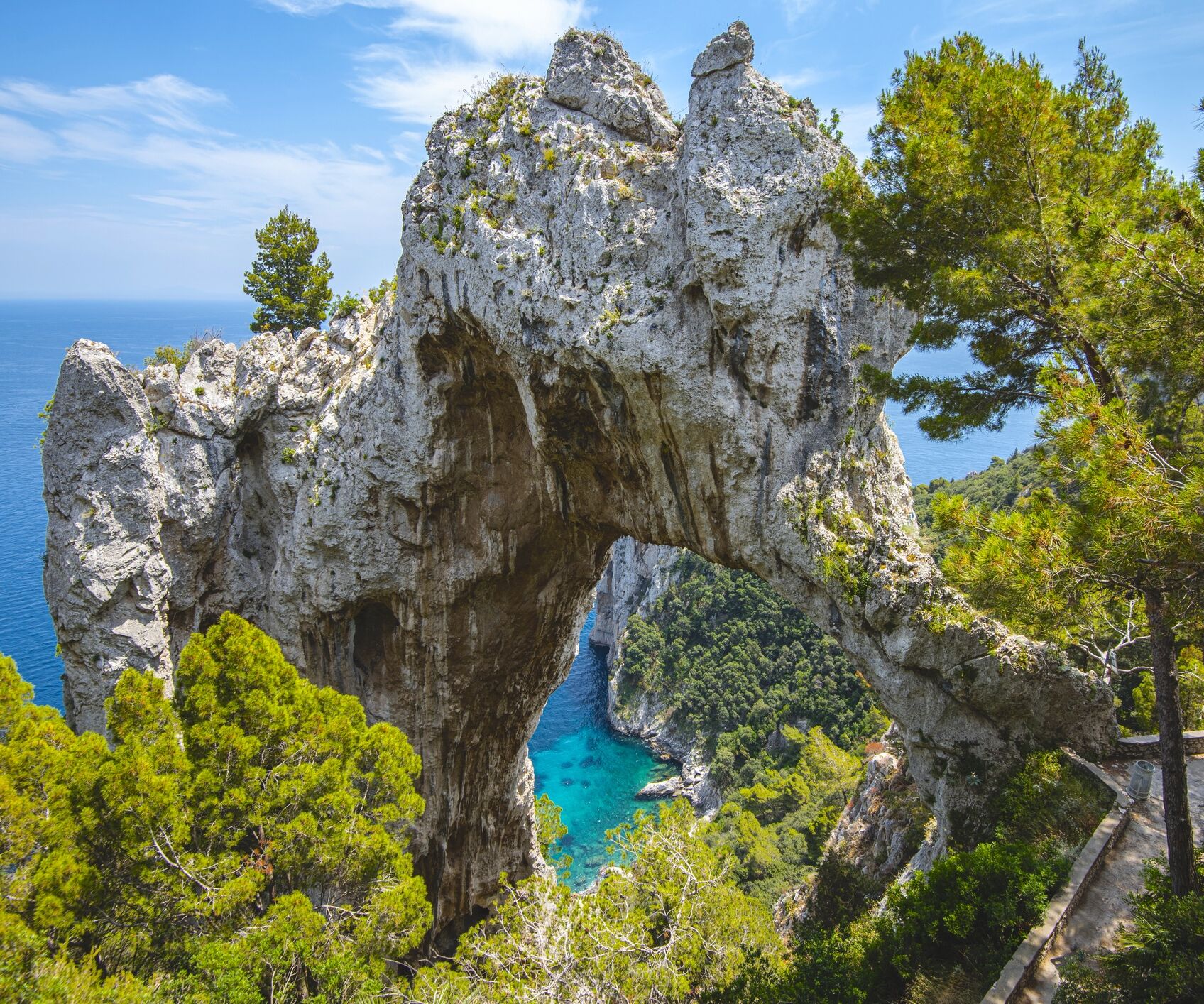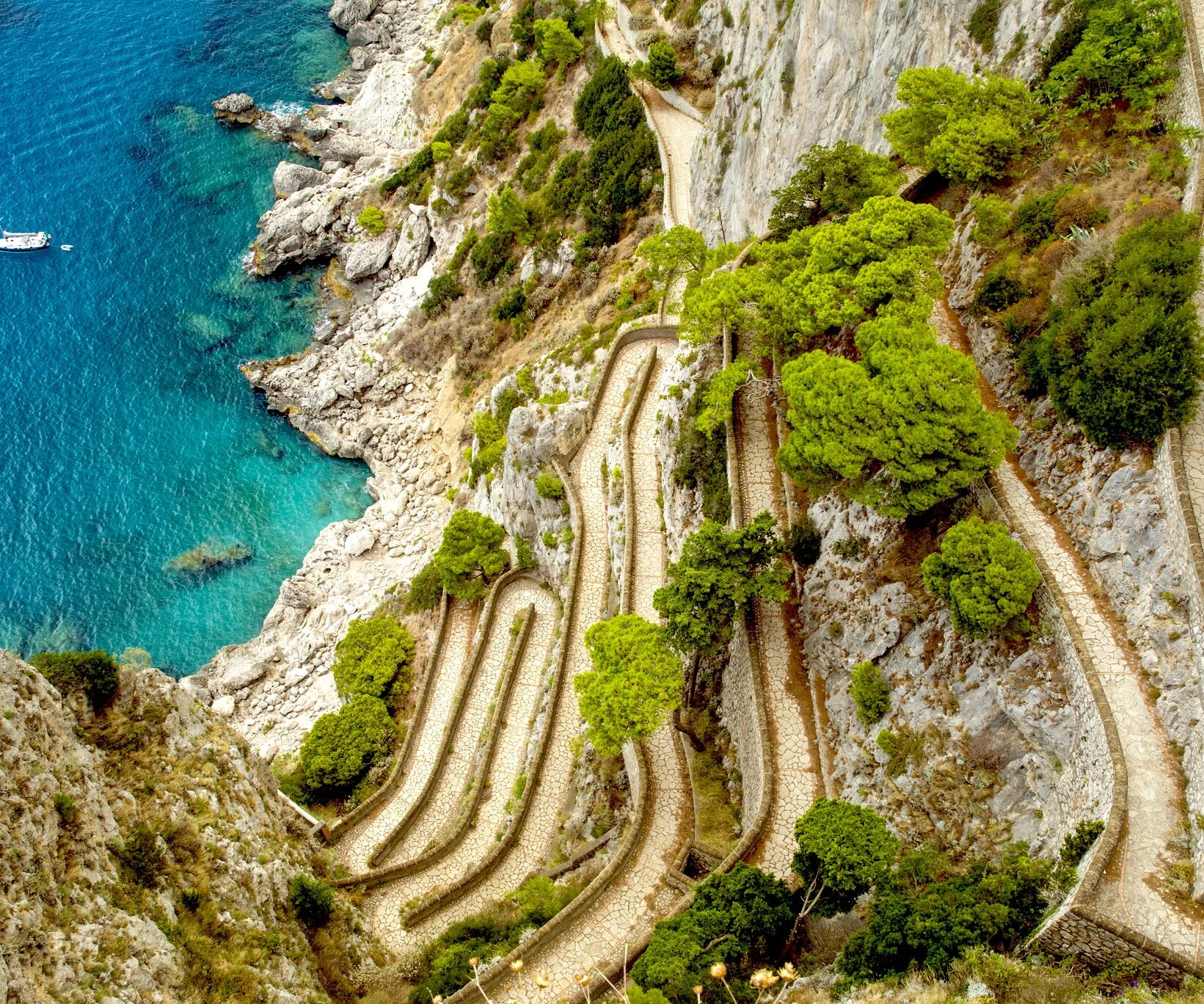 - The Gardens of Augustus and Via Krupp: Immerse yourself in the lush greenery and fragrant flowers of the Gardens of Augustus, a botanical paradise overlooking the Faraglioni of Capri on one side, and the Bay of Marina Piccola and the hairpin bends of Via Krupp on the other. Located around the Certosa Valley, Monte Tuoro, Monte Tiberio, Monte San Michele and the typical Capri houses with vaulted ceilings. Here you will find Via Krupp, a splendid stone street suspended over the Capri’s sea. Make your way down by foot to reach Marina Piccola and enjoy the view 100 meters over the sea!