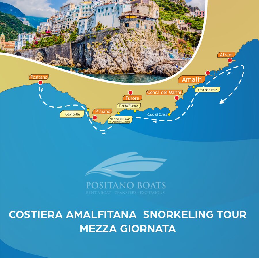 Scopri la Costiera Amalfitana dal mare con il nostro esclusivo snorkeling tour di mezza giornata per piccoli gruppi.