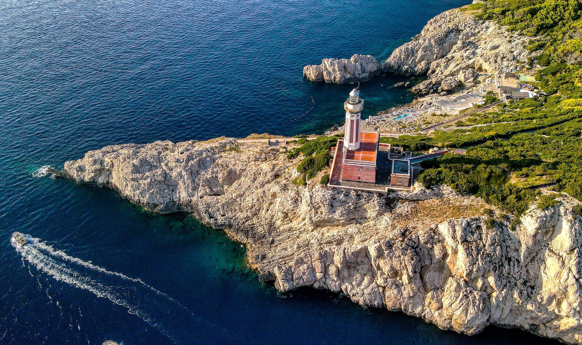 Successivamente faremo una sosta alla splendida Marina Piccola, una delle baie più amate dell’isola, perfetta per un po’ di relax e un bagno con vista. Il tour prosegue con la visita alla pittoresca Grotta Verde, dove l’acqua assume tonalità smeraldo, fino al punto più estremo di Capri: Punta Carena, dominata dal suo affascinante faro, una delle immagini più romantiche e suggestive dell’isola.