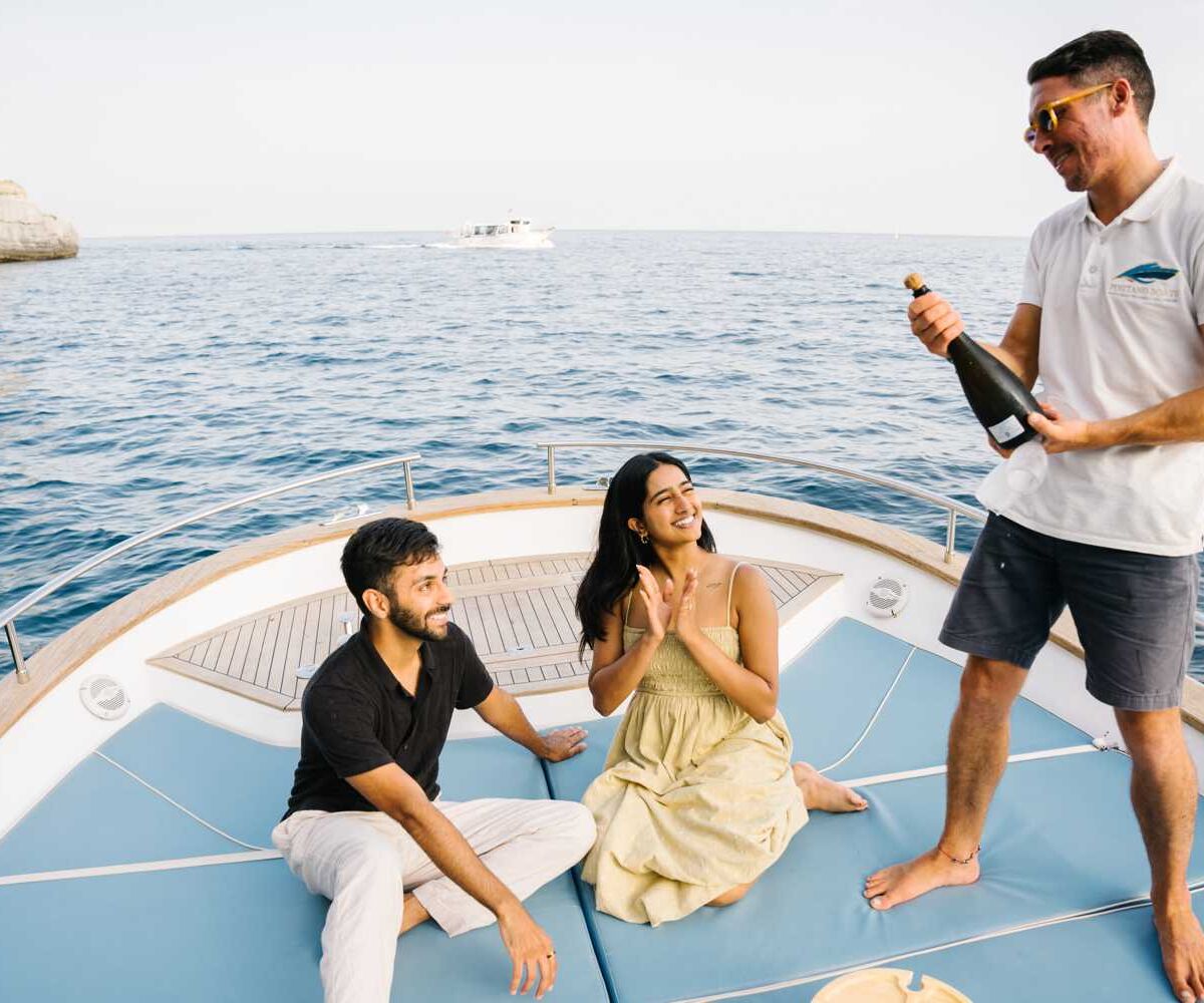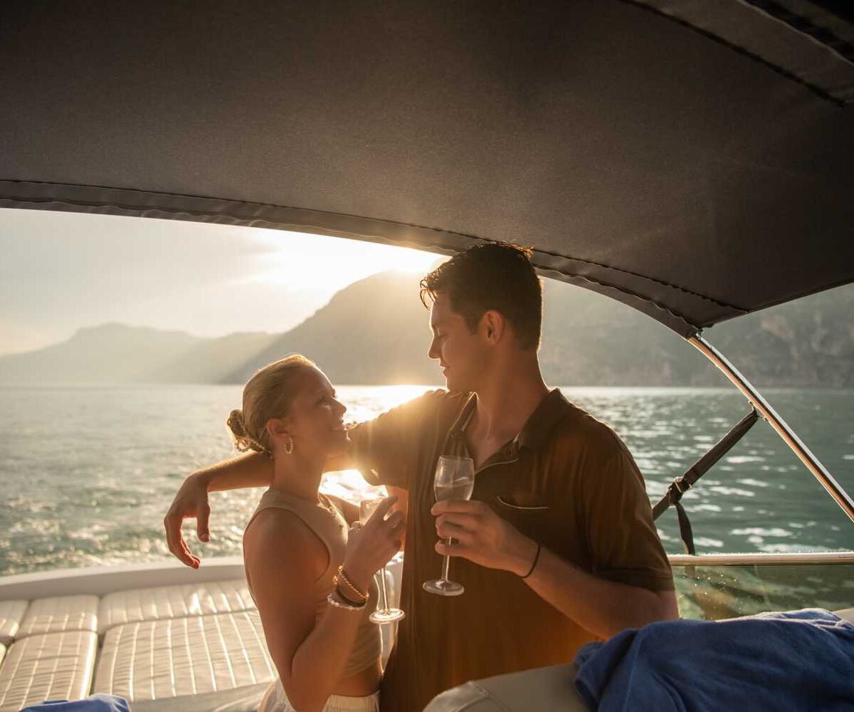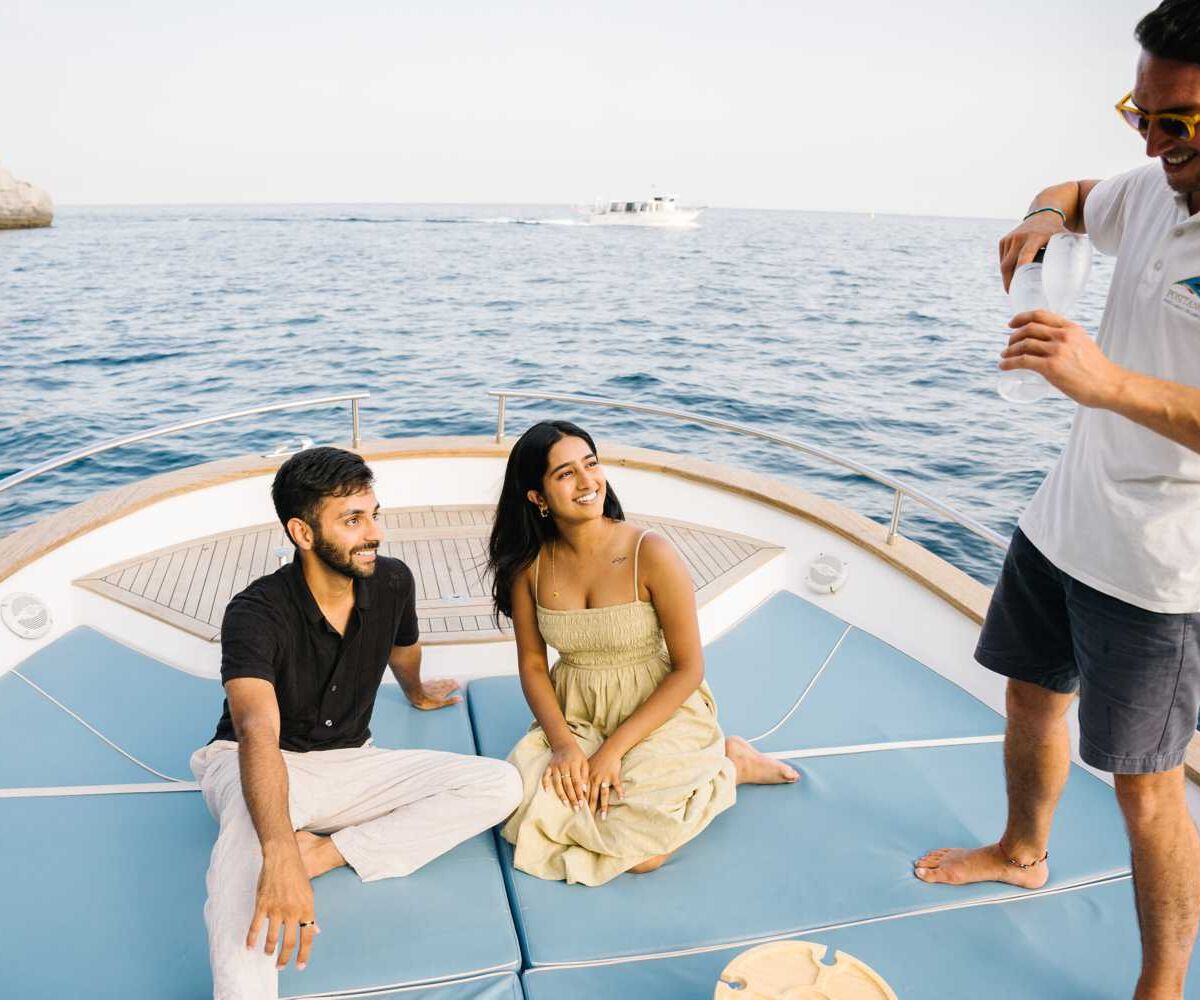 Ti piacerebbe goderti qualche ora a bordo verso la Costiera Amalfitana o l’Isola Li Galli, ammirando il sole che tramonta all’orizzonte?