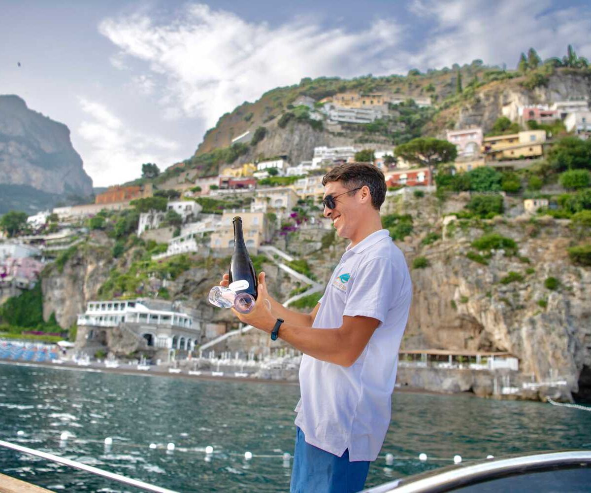 Più avanti durante la crociera, il primo paese che vedrai è Praiano, un tempo villaggio di pescatori, che ha due spiagge tipiche La Gavitella, noto come il luogo della Costiera Amalfitana dove “il sole non tramonta mai” perché il sole cala intorno alle 20:30 durante il periodo estivo, e Marina di Praia, una piccola baia dove ammirare la torre dell’Assiola e le tipiche barche in legno dei pescatori che ondeggiano nel porticciolo.Arriveremo al famoso Fiordo di Furore, una splendida insenatura circondata da ripide scogliere e con un fantastico ponte ad arco, dove ogni anno si svolge un’importante gara di tuffi.Sulla via del ritorno, lasciati alle spalle il fiordo, Conca dei Marini con la sua torre di Capo di Conca e ammira con una prospettiva diversa la costa fino a Positano.