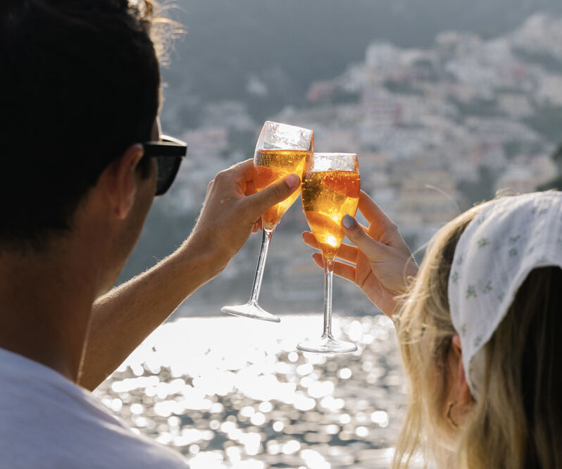 Goditi la vista di Positano e del Fiordo di Furore sorseggiando un bicchiere di prosecco!