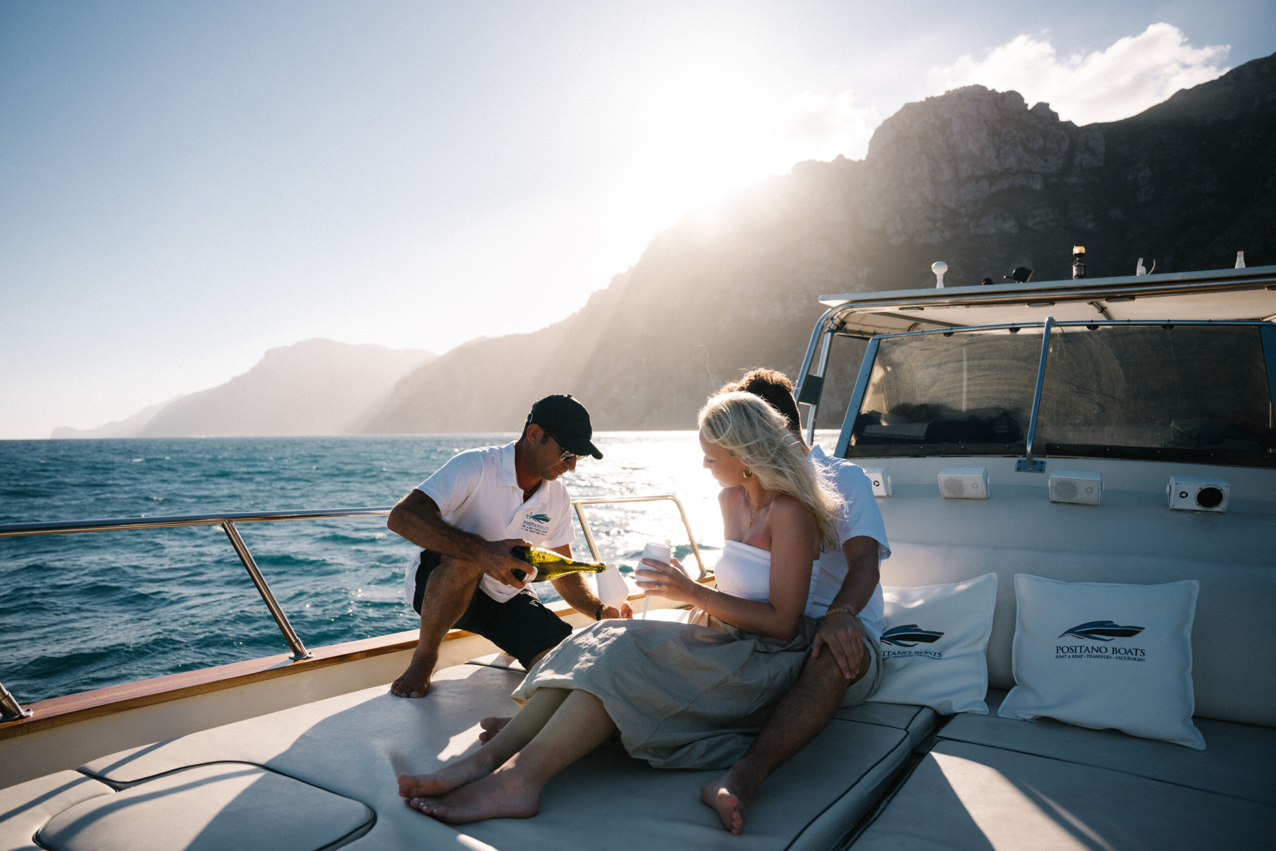 On the way back to Positano, you will enjoy an amazing sunset with a little aperitif on board in front of the famous Li Galli Island. This archipelago is made up of three islets: Gallo Lungo, La Rotonda and Isola Dei Briganti, the perfect spot for romantic cheers at the end of the day with the view in the distance of Positano.