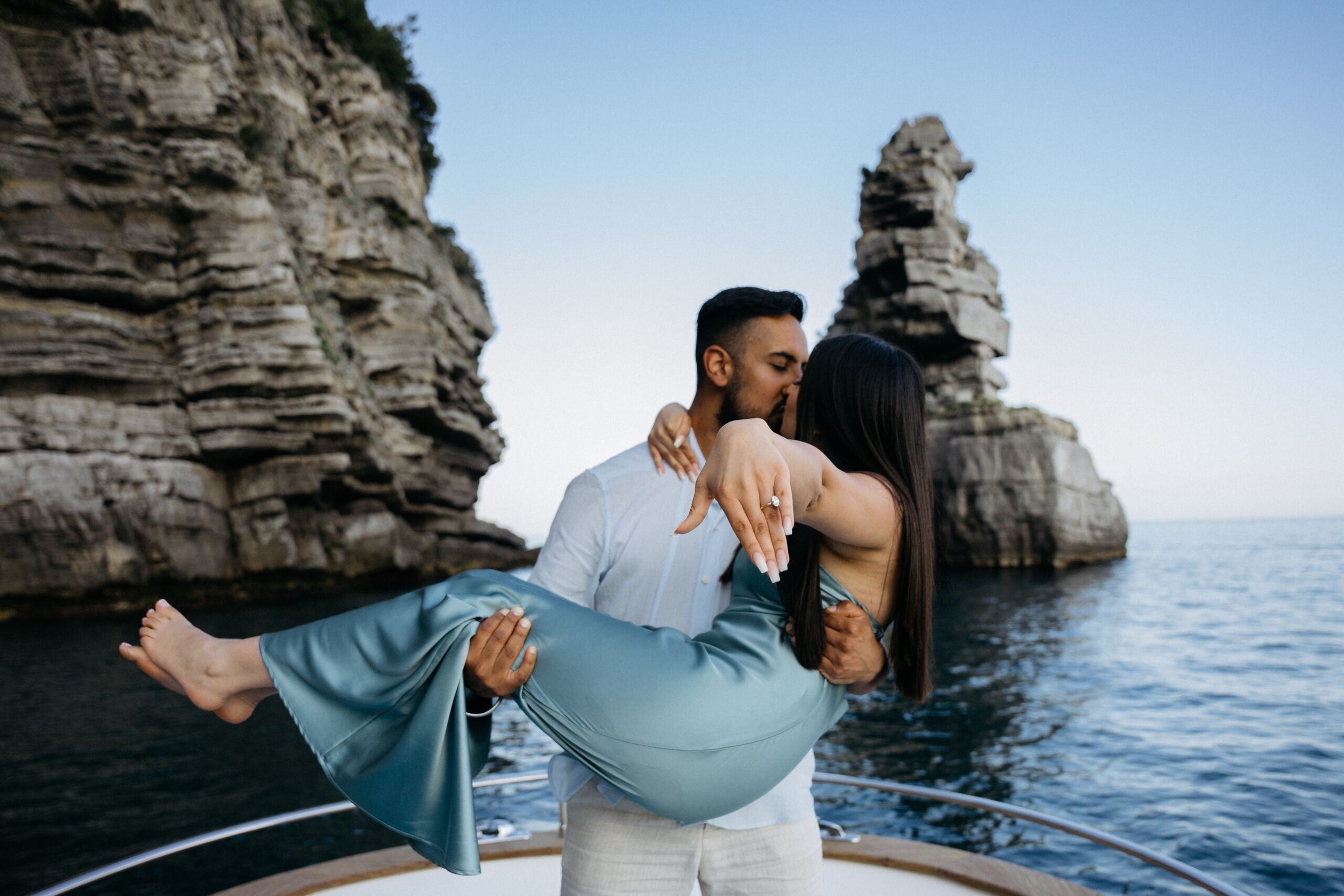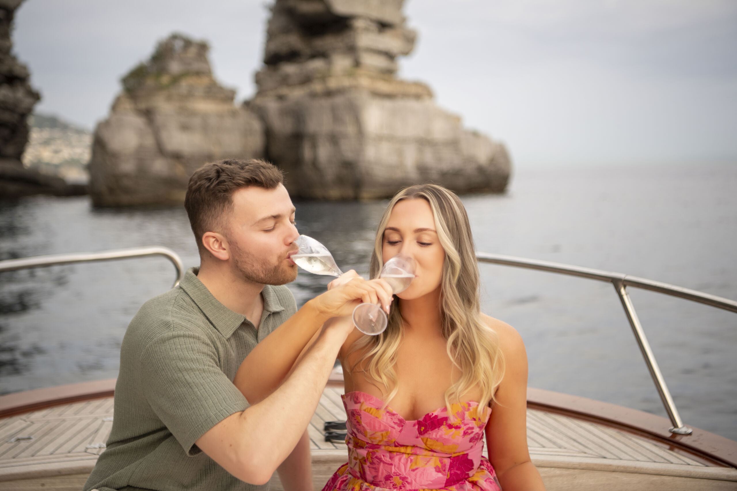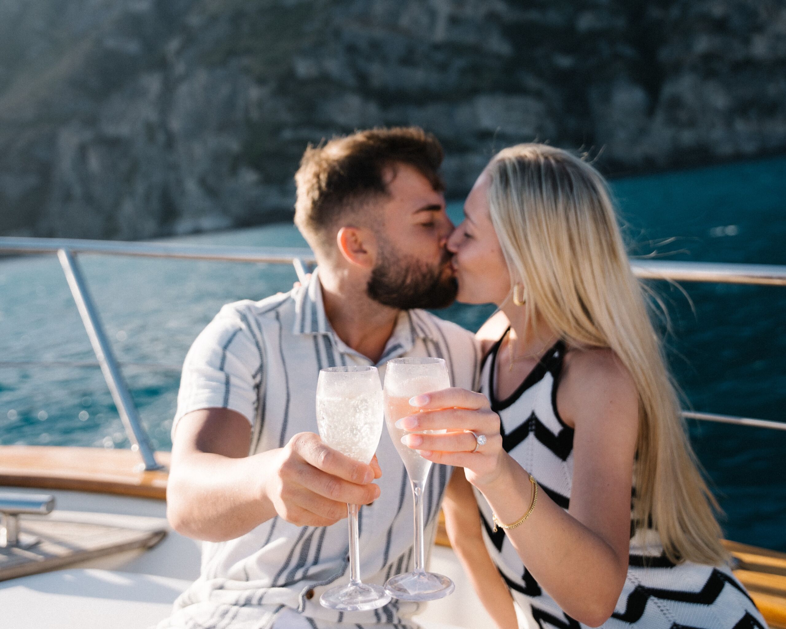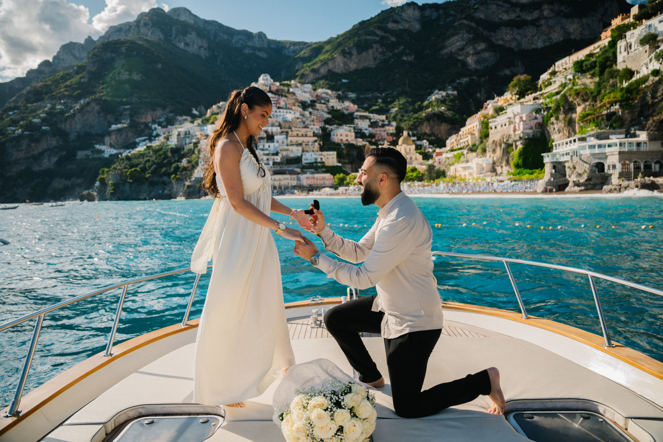 At the perfect moment, the captain will stop the boat to allow you to get down on one knee and pop the question, while the sky of Positano is tinged with the warm colors of the sunset.