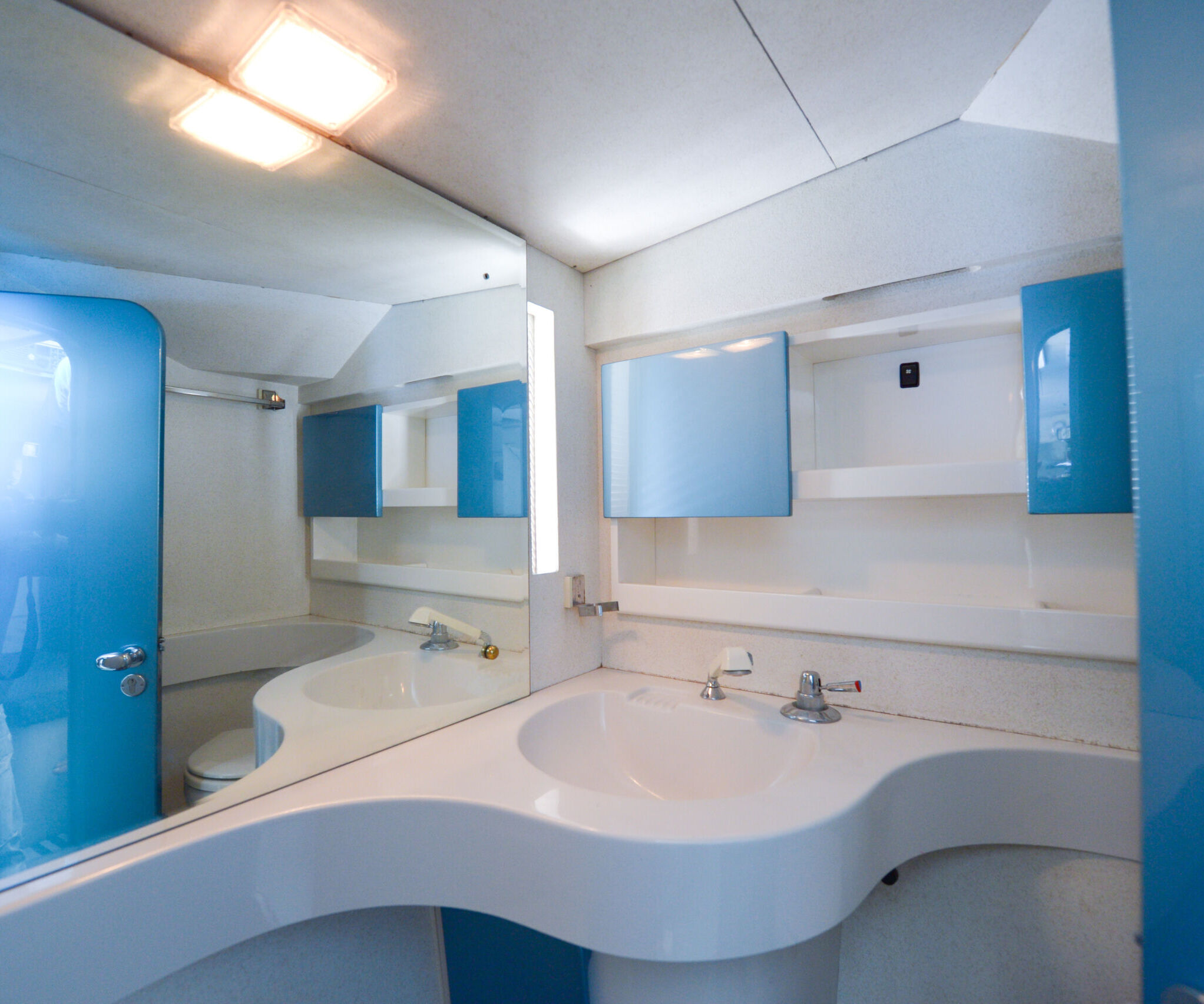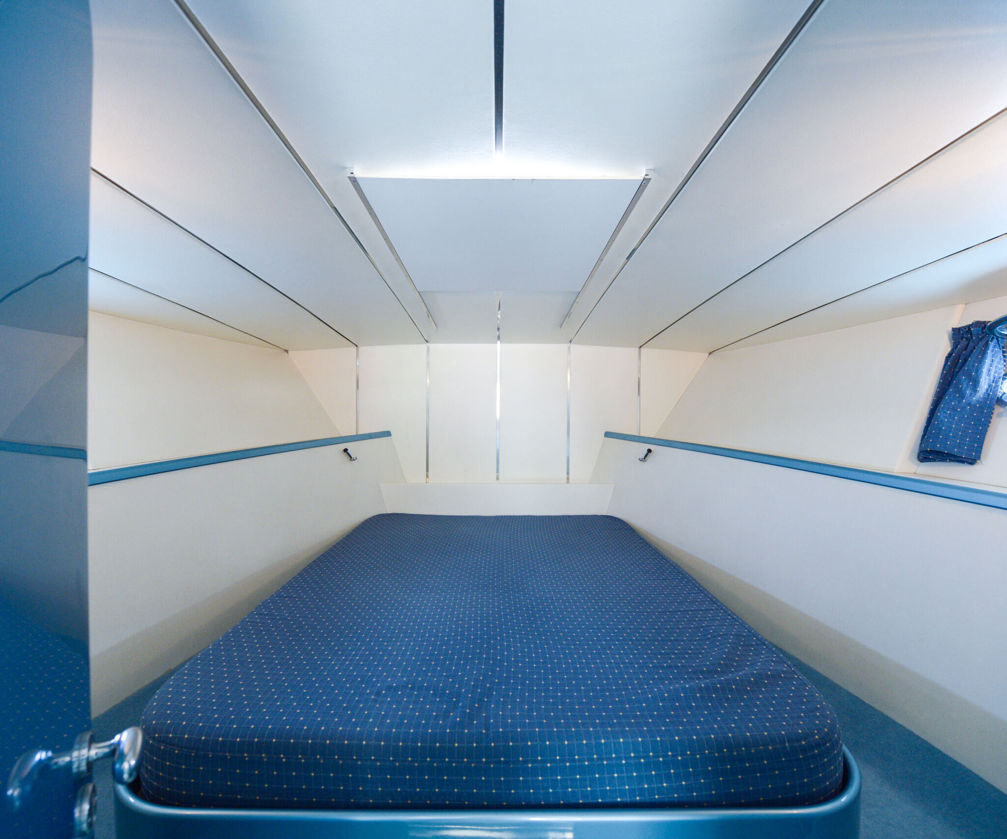 The “Jaw S” is provided with a private cabin, comprehensive of a bed and a bathroom.