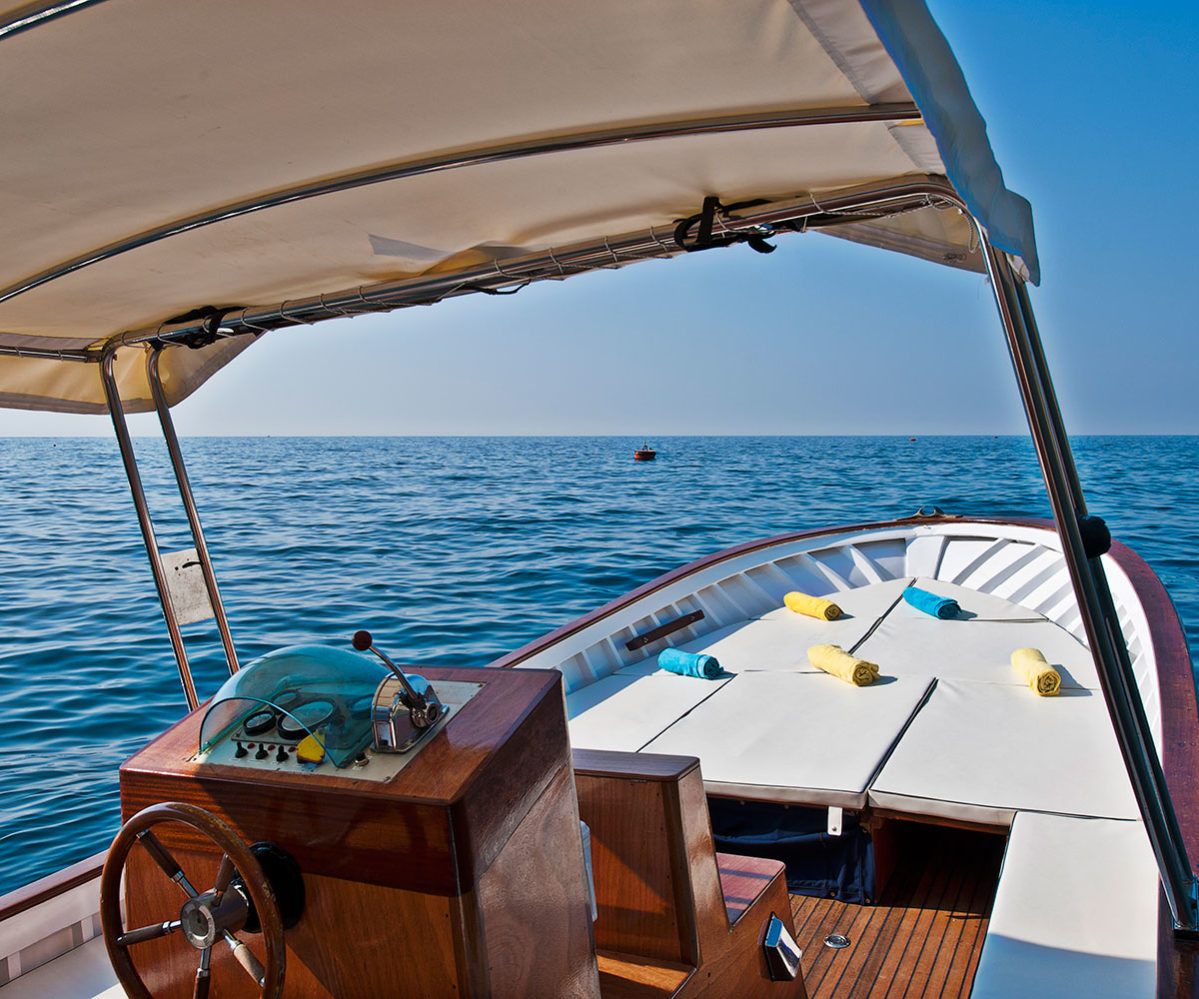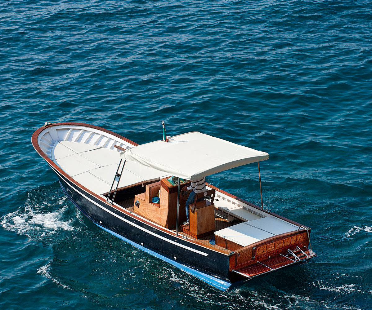 The “Serena” is a typical boat made entirely of wood, a good choice for cruising towards all the little towns of the Amalfi Coast, such as Positano, Praiano, Conca dei Marini, Amalfi and Atrani.