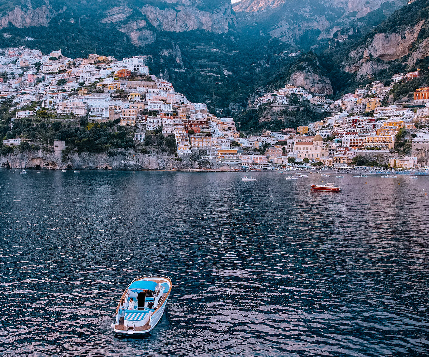 Sail towards the coast, admire the last lights of the day before arriving at Gavitella, in Praiano, a typical restaurant of the Amalfi Coast, with a splendid terrace overlooking the sea.
