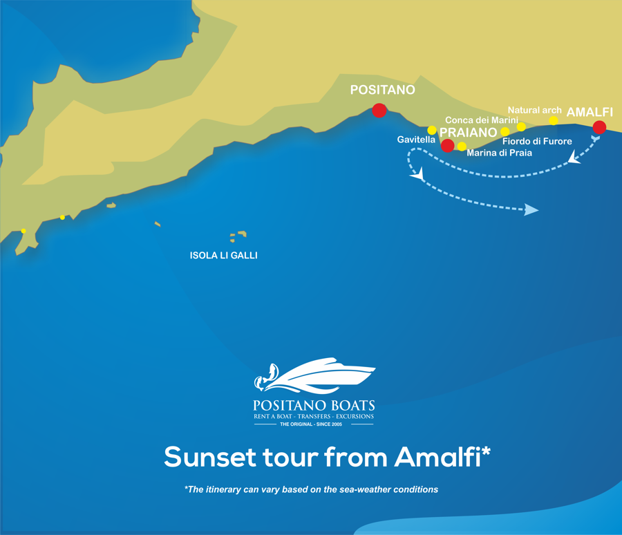 Embark from the Maritime Republic of Amalfi and sail towards all the most iconic spots of the Amalfi Coast.